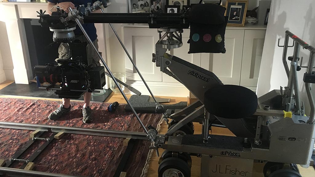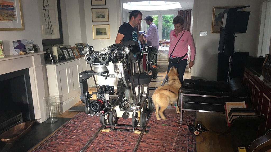 Shot on the Alexa mini, with a Fisher dolly, tightly choreographed movements were needed to complete this seamless tracking shot, including some excellent stunt dog licking!